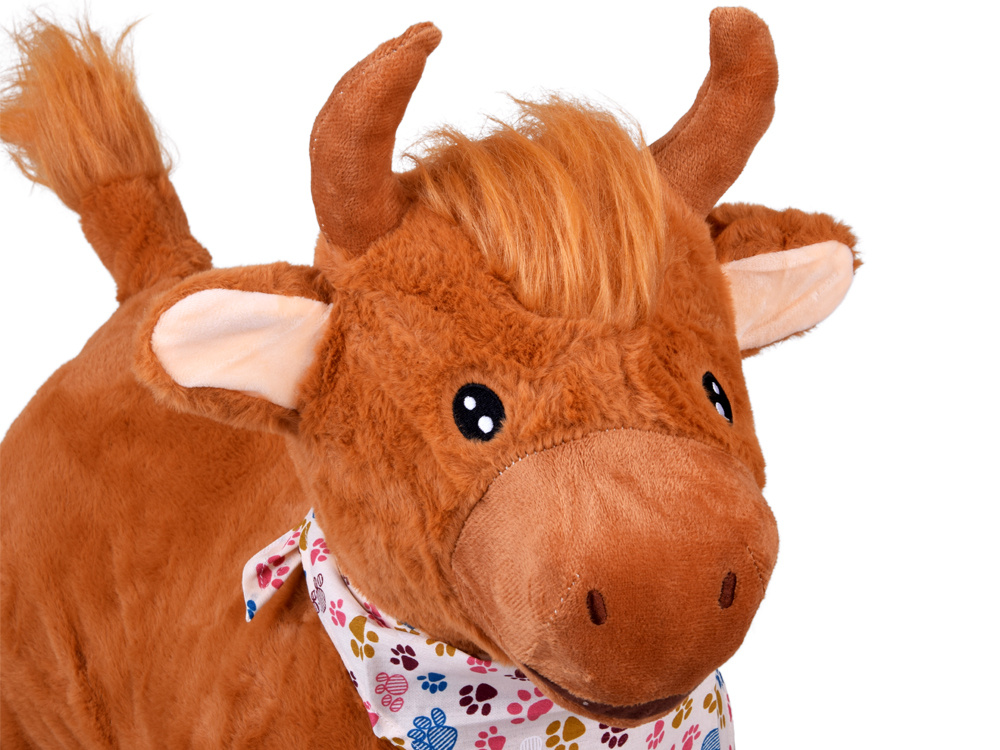 To make the bull even cuter, you can tie a light scarf around its neck, decorated with colorful paw prints inspired by animals. Now it’s fully ready and waiting for fun with you!