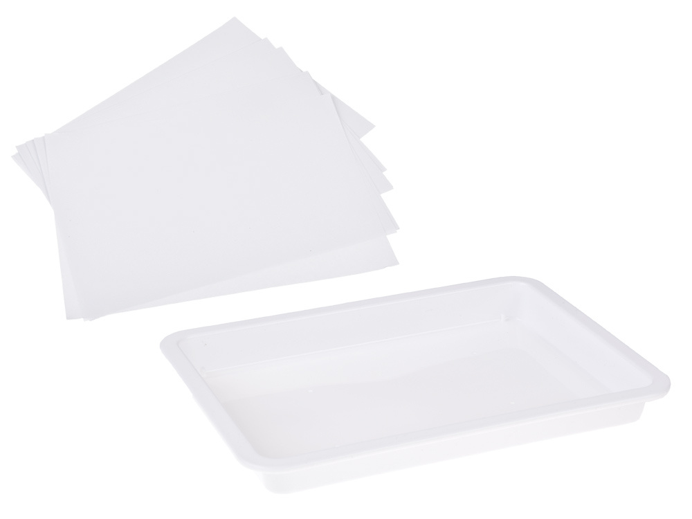 - A rectangular plastic bowl measuring 24 cm x 18 cm x 2.5 cm