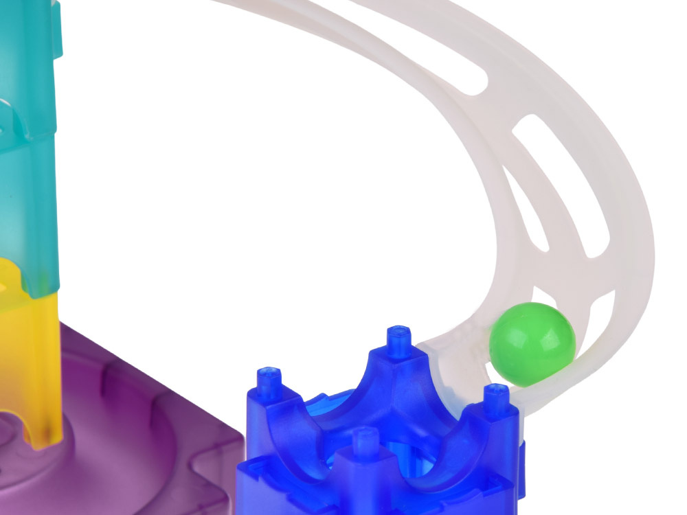 Thanks to the transparent and colorful elements, children can watch the marbles move along the track, learning about cause-and-effect relationships and the basics of physics through play. The set helps develop hand-eye coordination and fine motor skills, while also supporting STEM education (Science, Technology, Engineering, and Mathematics).