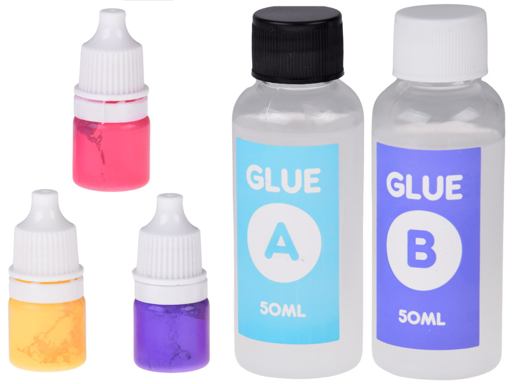 - Pour equal amounts of glue A and glue B into the measuring cup and mix for about 3 minutes until smooth.