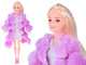 Behind the wheel sits a stylish doll wearing a purple fur coat, a silver dress, and elegant high heels, with long blonde hair – ready for any journey in true glamour style!