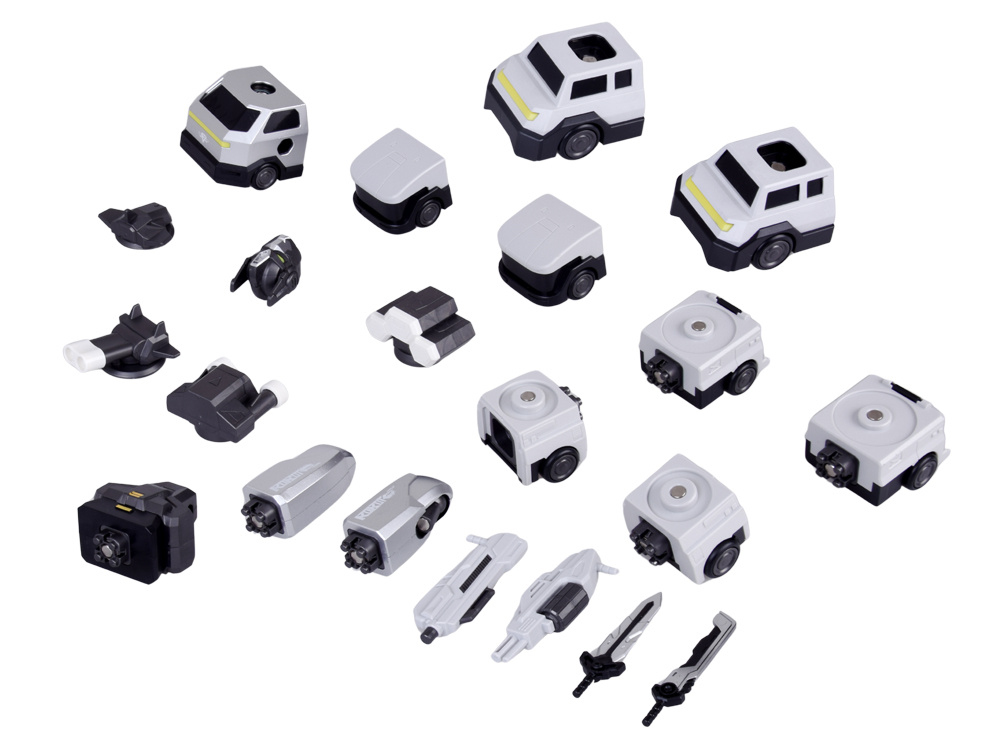 - Functions: transformation, movable parts, magnetic connections, light effects