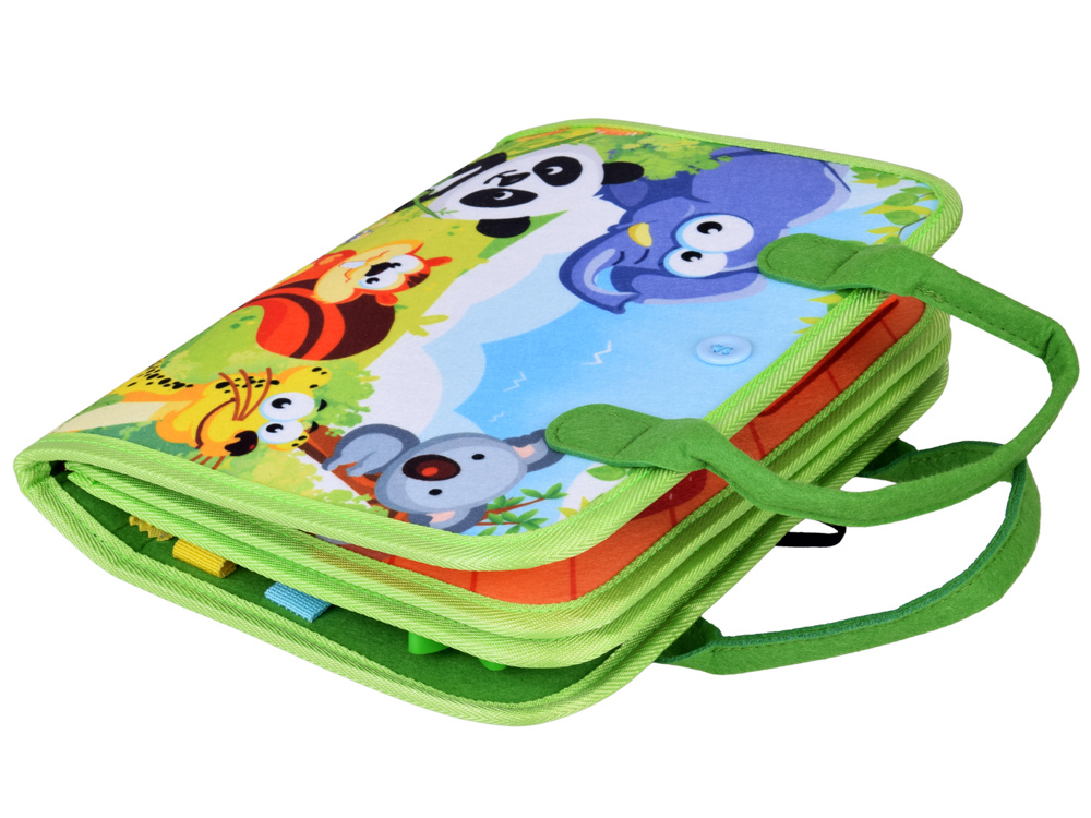 Discover an extraordinary educational book that supports your child's development through play! Our sensory book features 6 pages full of colorful, moving elements that engage the senses, develop fine motor skills, and teach independence. The cover features a charming animal graphic, while the back features the alphabet.