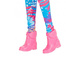 Winter outfit: colorful jumpsuit, pink boots, hat