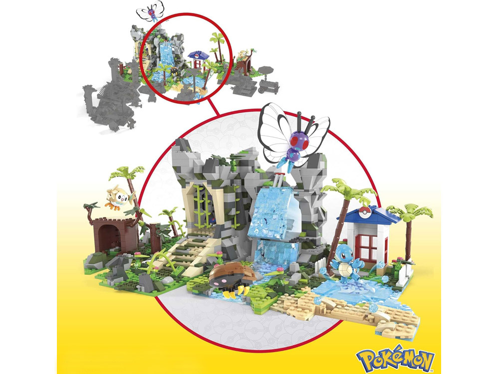 Once built, the set measures approximately 40 cm wide, 25 cm deep, and 25 cm high, providing plenty of space for interactive play. It can also be combined with other MEGA Pokémon Adventure Builder sets (sold separately) to expand the Pokémon world with forest paths, waterfalls, ancient temples, and more.