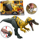 The texture of the material, reminiscent of dinosaur skin, the jaws full of sharp teeth, and the clawed paws, give the dinosaur a menacing look.