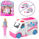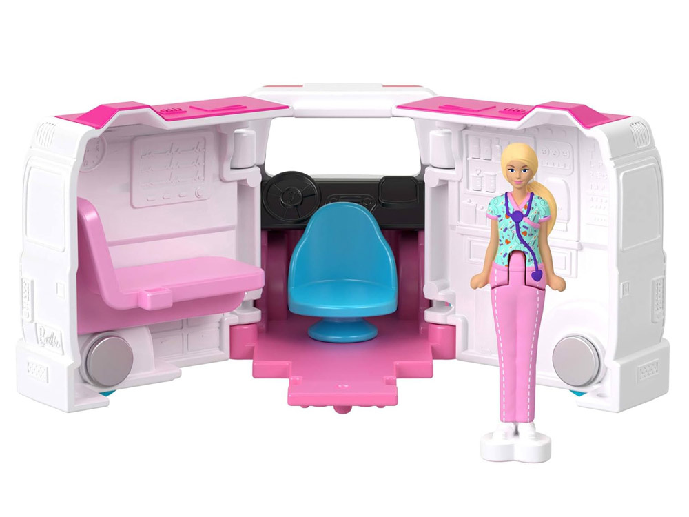 This set features the iconic Barbie Care Clinic in a miniature version. The vehicle opens up to reveal the interior of the clinic – a place where Barbie can care for her patients.