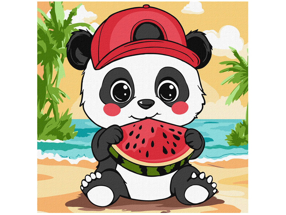 Canvas Painting by Numbers "Summer. Panda with Watermelon" – creative fun for little artists!