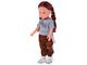 This unique doll will delight every little girl! She has short, thick black hair with a straight fringe that can be combed and styled in many ways. She is dressed in a comfortable gray T-shirt with a print, brown sweatpants with white side stripes, and white lace-up sneakers. Her outfit combines modern style with comfort, making her perfect for active, everyday adventures.