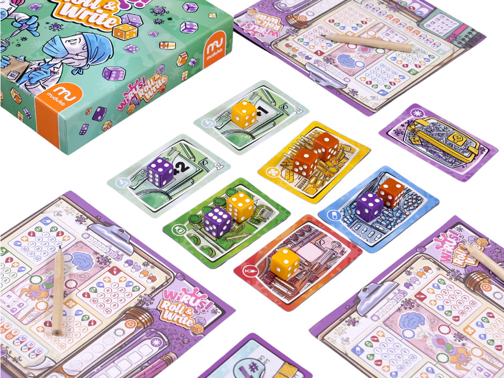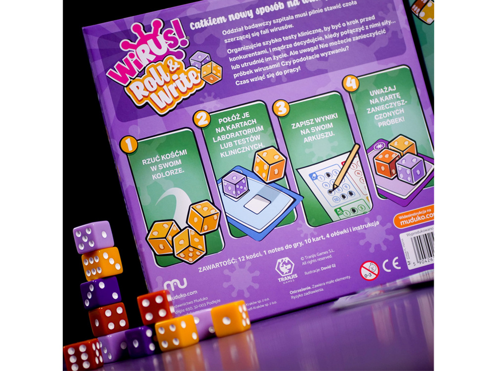Virus! Roll & Write offers a fresh and exciting twist on the beloved Virus! universe — easy to learn, quick to play, and filled with strategic choices. Every roll counts, and only the most resourceful researcher will prevail!