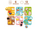 The Small and Big Animals set includes 6 colorful four-piece puzzles featuring cheerful farm animals and 12 round tokens for play. It’s a wonderful introduction to slightly more advanced puzzles and a simple matching game that helps develop observation skills, fine motor skills, and imagination.