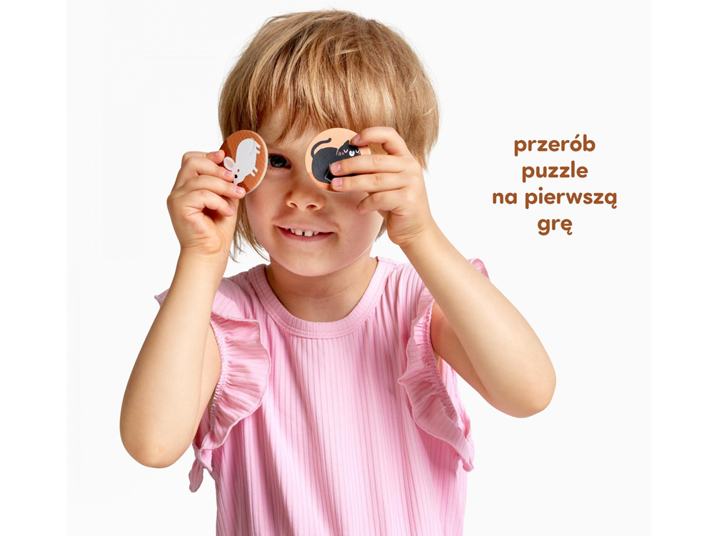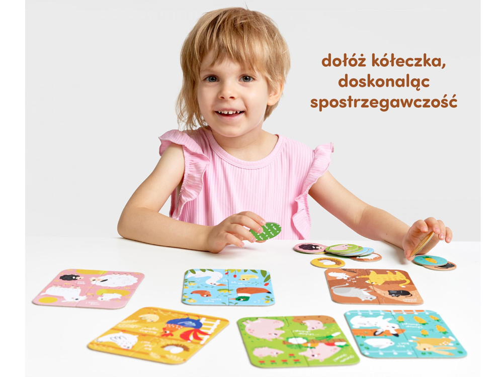 First, put the animal scenes together, then match the round tokens to the correct pictures. You can also invent your own games, draw, or imitate animal sounds and movements — there are endless ways to play!