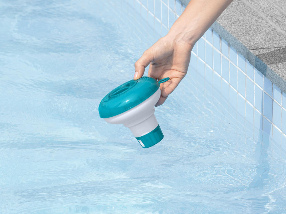 - Chemistry dispenses the appropriate amount to the size of the pool