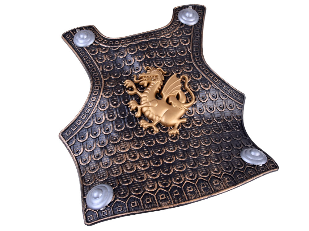 Armor made ​​entirely of flexible plastic, safe. Armor very nicely and neatly made ​​with the emblem of the dragon.