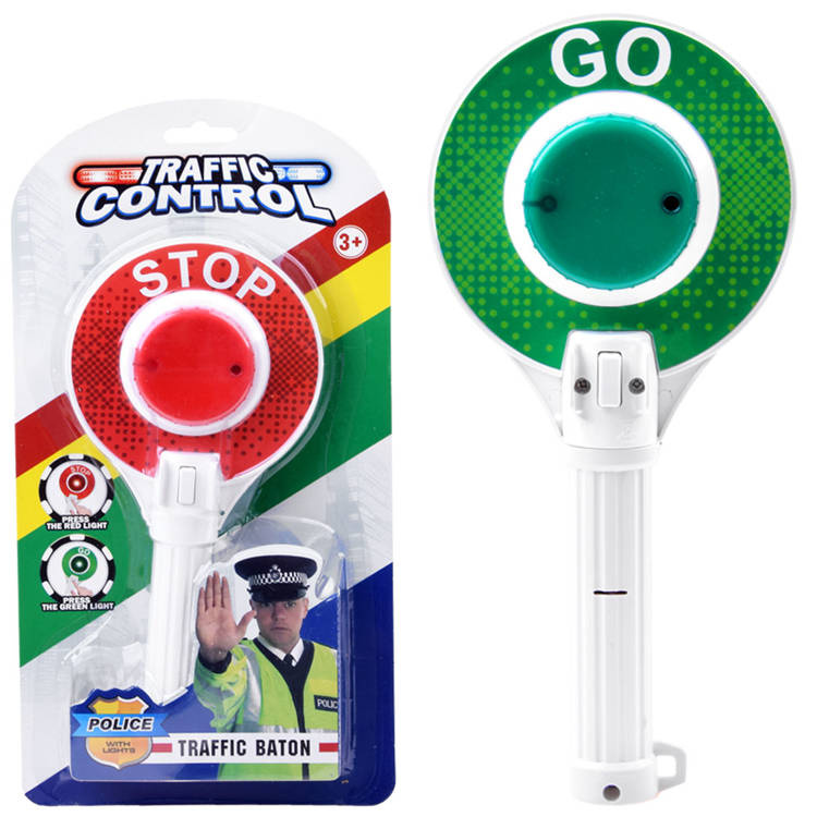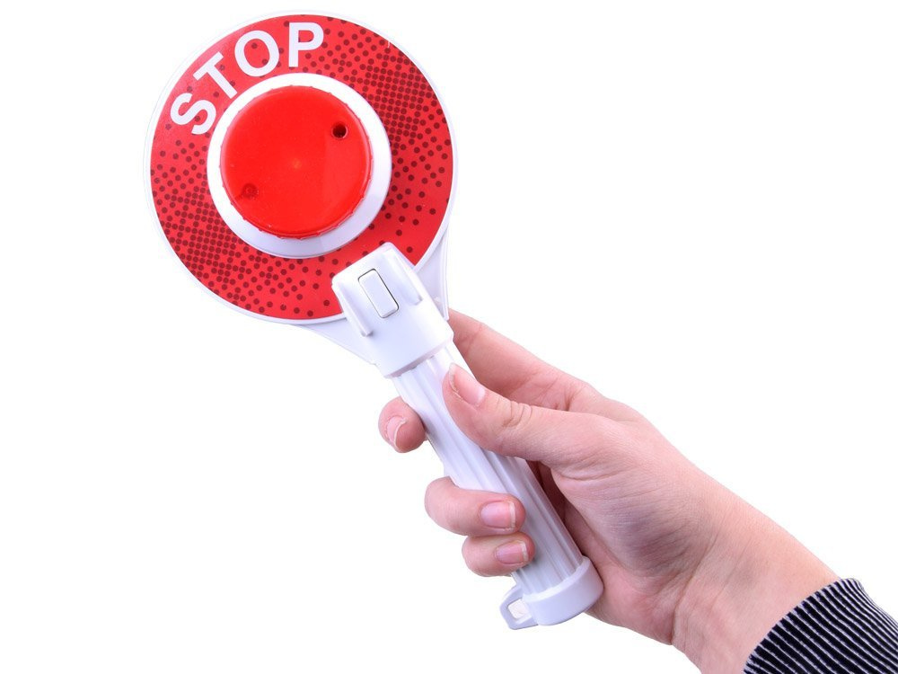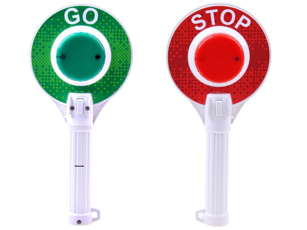 • Dwustronny lizak policyjny, policja, zabawa w policjanta, kontrola ruchu drogowego, zielone, czerwone światło