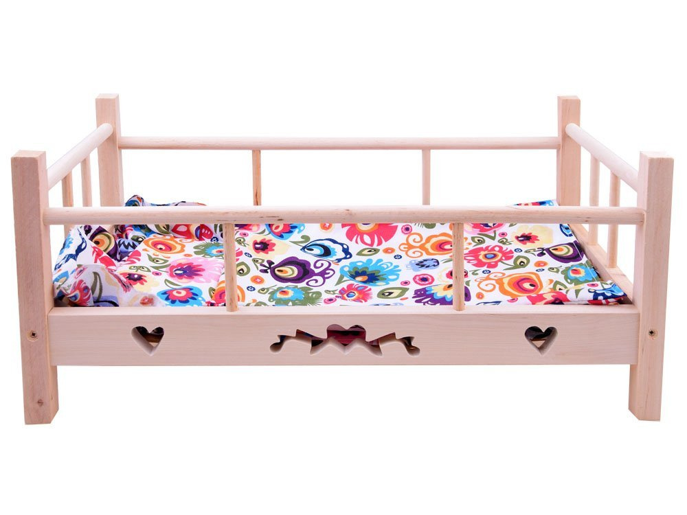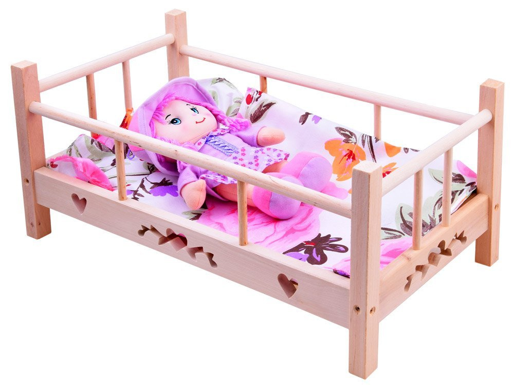 Wooden cot for a doll with a maximum height of 50 cm with bedding will be useful for every little mother.