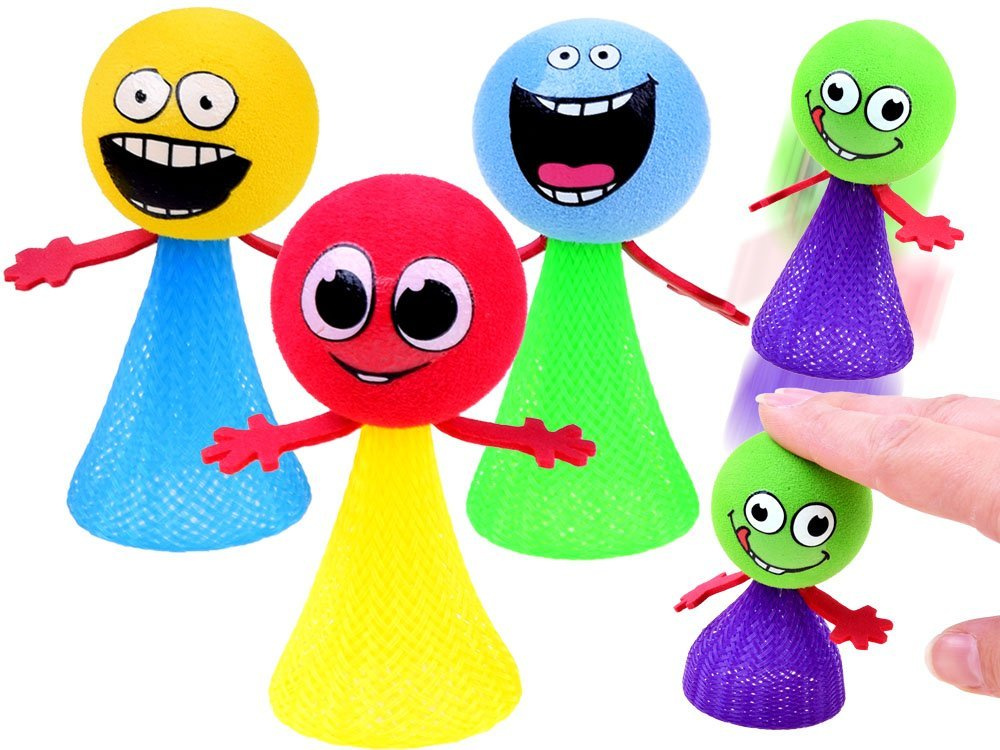 Wesoły sprężysty elf wyglądem przypominający lotkę do badmintona, sprytnie Was zaskoczy. Naciśnij palcami elfa w dół do ziemi i patrz jak szybko leci w górę!