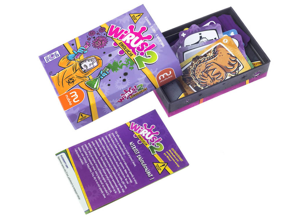 Wirus 2 Ewolucja to dodatek do podstawowej gry Wirus. Gra wirus polega na powstrzymaniu epidemii, co jest nie łatwe, jak już każdy wie. Ewolucja pozwala na rozszerzenie działań w opanowaniu epidemii, przenosząc wirusy do kwarantanny. Ponieważ tradycyjne metody leczenia okazały się nieskuteczne. Wirus ewolucja pozwala na użycie nowych kart, nowych zasad. Gra wciąga i wymaga od gracza (naukowca) użycia sprytu i inteligencji, dosłownie jak w prawdziwym życiu.