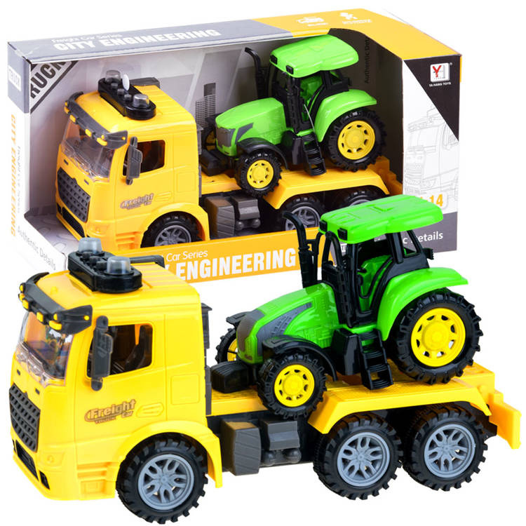 A truck with semi-trailer for carrying heavy tractors, will provide creative play.
