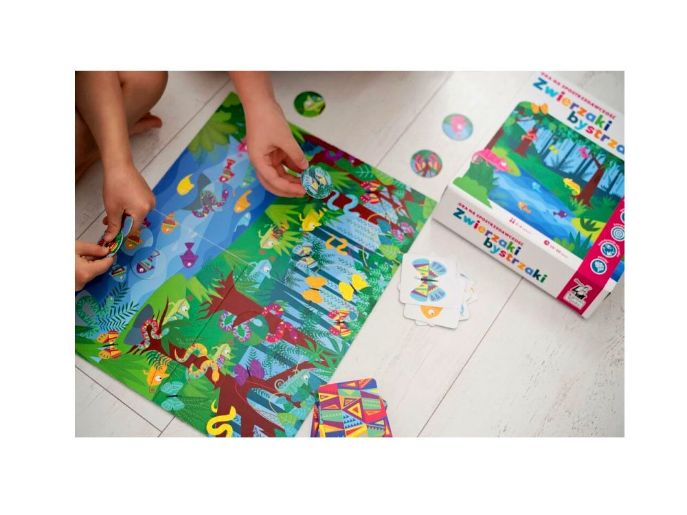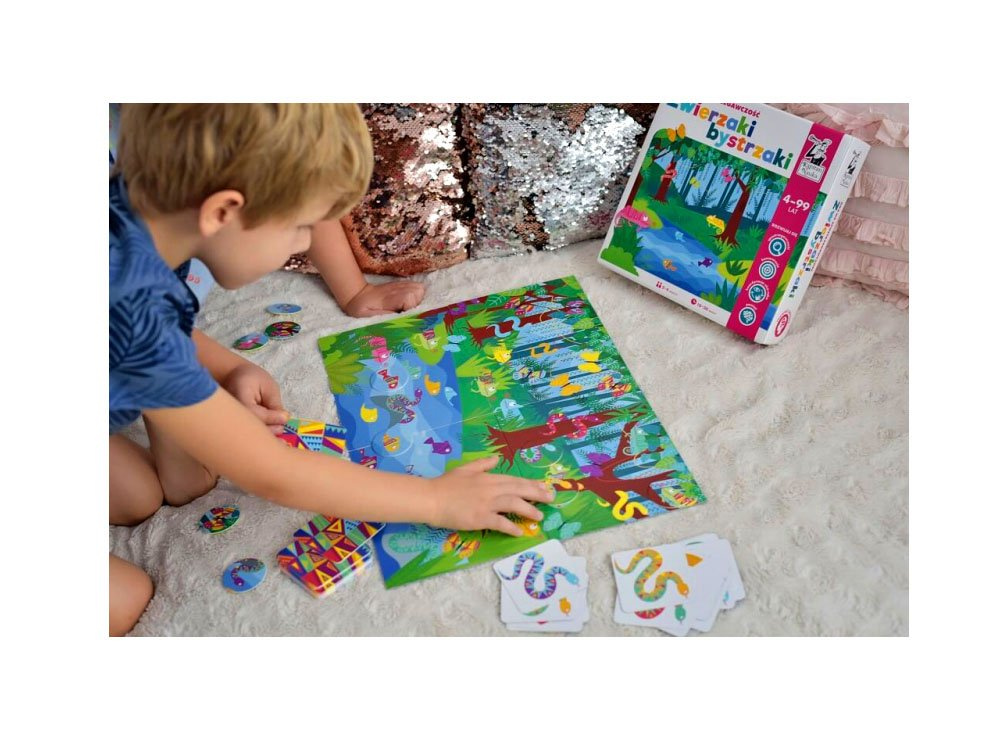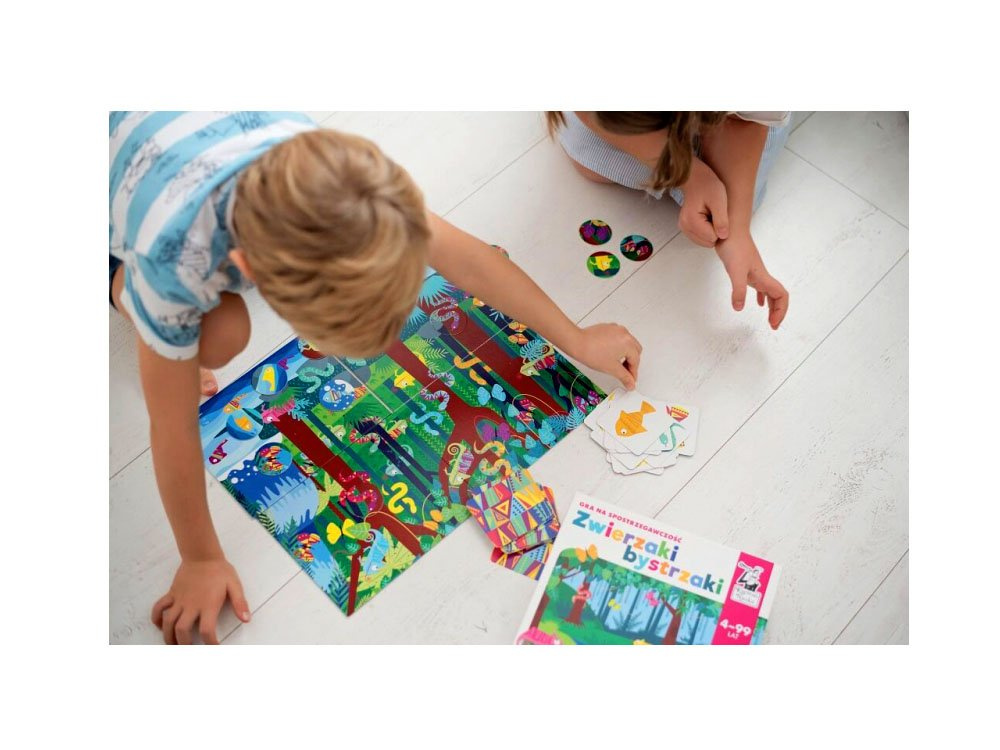 Gra na spostrzegawczość „Zwierzaki bystrzaki” (4–99 lat) to edukacyjna zabawa dla całej rodziny, podczas której gracze ćwiczą bystre oko, refleks, pamięć i umiejętność skupienia uwagi.