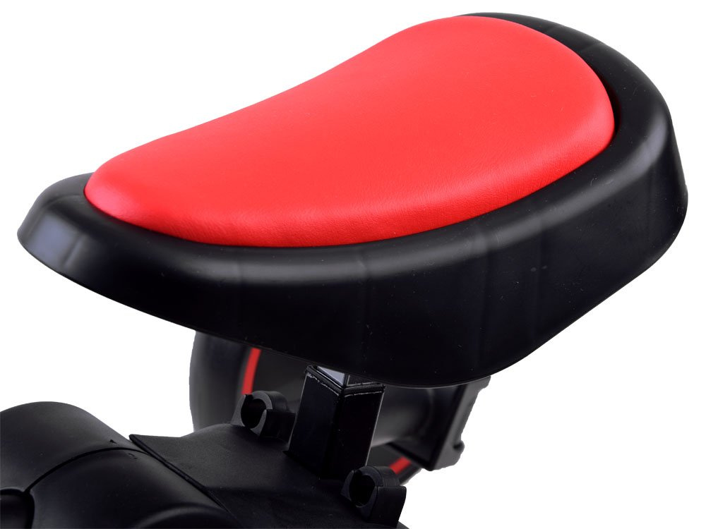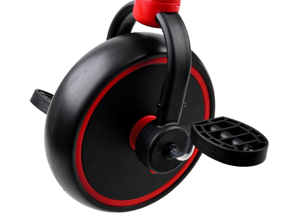 - Rowerek trójkołowy opcja dla dziecka, które ma ochotę używać już siły swoich nóżek do pedałowania, rowerek ma zamontowane pedałka, rozstawione szeroko z tyłu koła. Jazda jest stabilna i bezpieczna