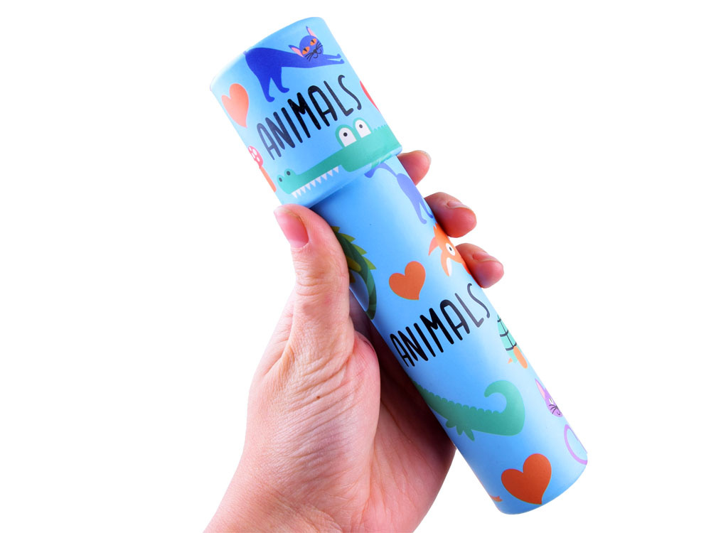 Kalejdoskop jest klasyczną zabawką pobudzającą wyobraźnie dziecka, ma więc wszelkie szanse by stać się ulubioną zabawką dziecka. Wewnątrz znajdują się kolorowe elementy, które tworzą różne wzory. Wystarczy obracać obiektywem, a za każdym razem obraz zmieni się nie do poznania.