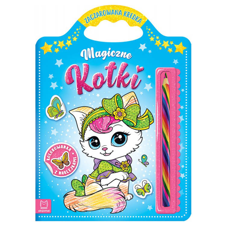MAGICZNE KOTKI. KOLOROWANKA Z NAKLEJKAMI. ZACZAROWANA KREDKA.