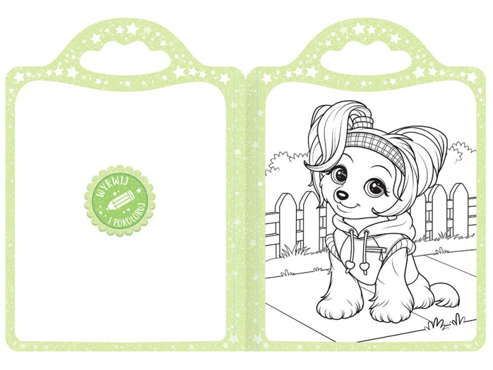 Format: | A4; ilustracje barwne; brokat na okładce; perforacja; dołączona tęczowa kredka |