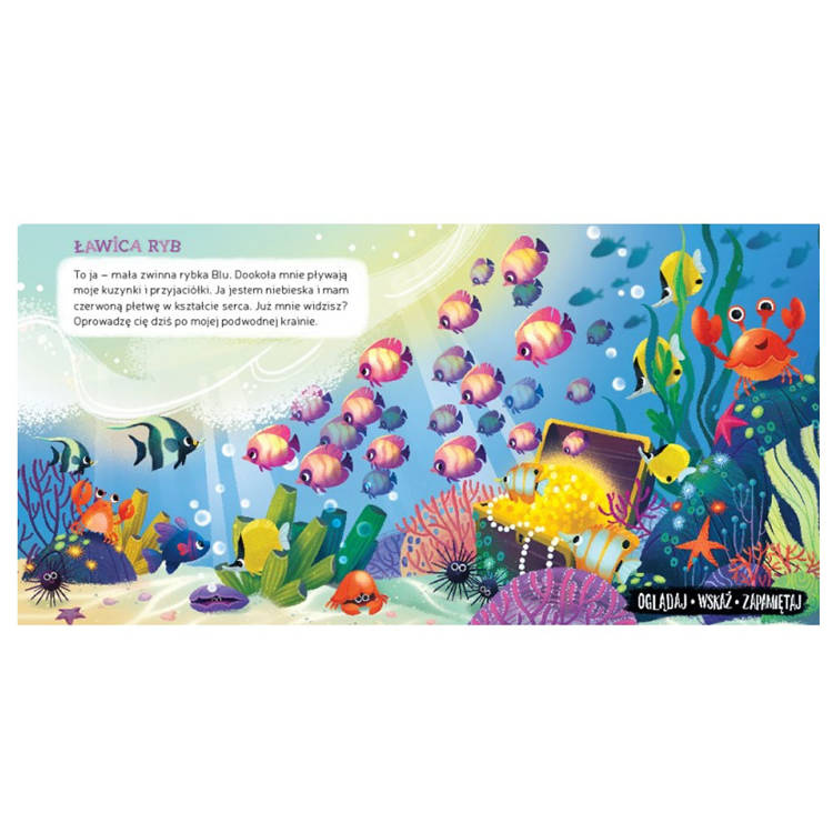 Kolorowa, urocza książeczka Co zobaczę w morzu to pięknie ilustrowana wyszukiwanka dla najmłodszych dzieci, która zatrzyma ich uwagę na długi czas. Na kartach książeczki dziecko pozna mieszkańców mórz, nauczy się ich rozróżniać i nazywać. A najlepszą zabawą dla malucha będzie wyszukiwanie, wskazywanie i liczenie dowolnie wybranych elementów na bajecznie kolorowych stronach. Ogromny wybór różnego rodzaju książeczek: bajek i baśni, opowiadań, kolorowanek, łamigłówek itp. dla dzieci w każdym wieku, znajdą Państwo w sklepie Jokomisiada!