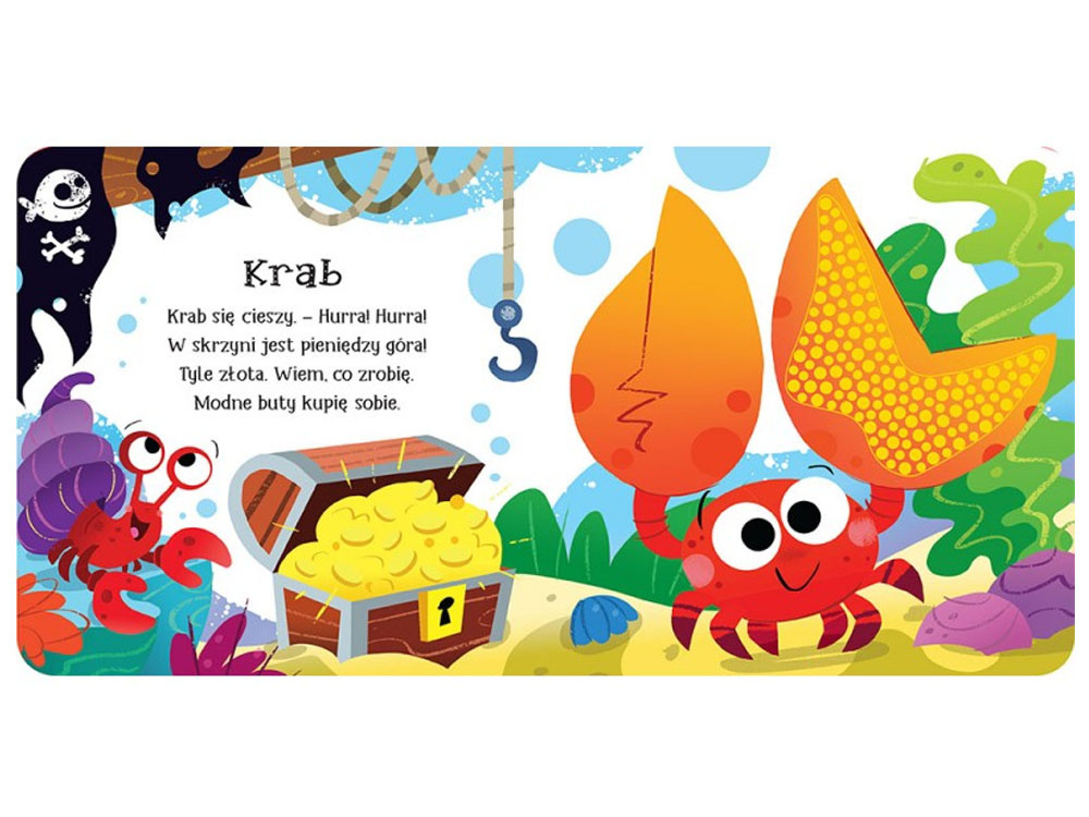 Podwodny świat to książeczka sensoryczna dla dzieci. Zawiera zabawne wierszyki oraz piękne, kolorowe ilustracje z silikonowymi fragmentami. Książeczka sensoryczna do czytania, oglądania i dotykania we wspaniały sposób stymuluje zmysły dziecka.