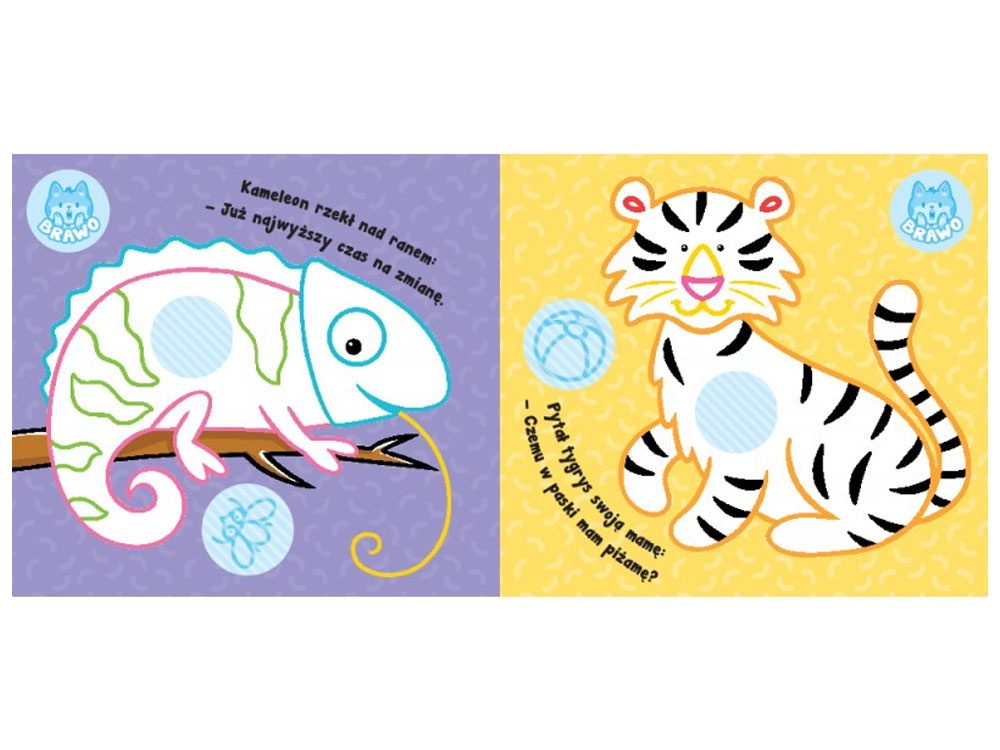 Książeczka została zaprojektowana tak, by bawić się z maluchem oraz rozwijać jego umiejętności. Znajdziemy w niej krótkie wierszyki, 32 kolorowe naklejki oraz papierową zabawkę do samodzielnego złożenia.
