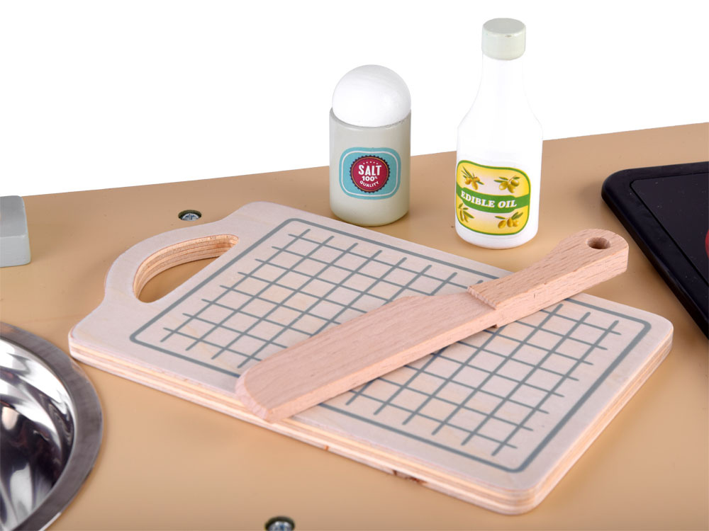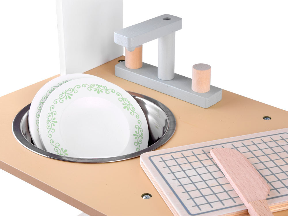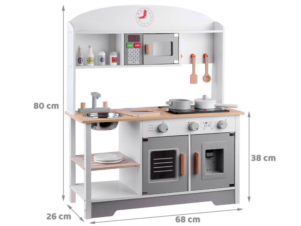 - Timeless design and durability: Wooden toys are valued for their classic look, strength, and sustainability – making this kitchen a long-lasting addition to any playroom.