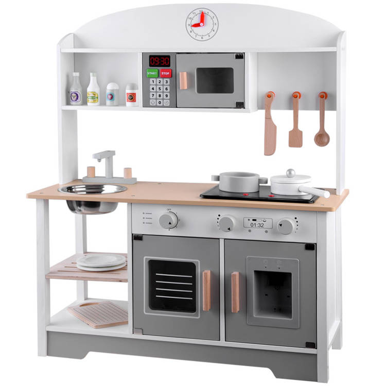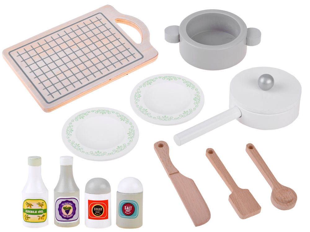 WHITE-GREY interactive wooden kitchen for children + accessories ZA4126