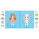 "Co mam włożyć?” to malowanka z naklejkami i papierowymi laleczkami do pierwszych dziecięcych zabaw.