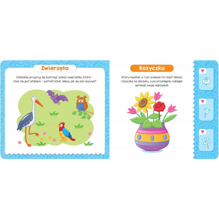 Dostosowane do wieku zadania zainteresują maluchy i zapewnią im rozwijającą zabawę, a możliwość sprawdzenia swoich odpowiedzi za pomocą kolorowych naklejek sprawi dzieciom dużo radości. Zapraszamy do zabawy!