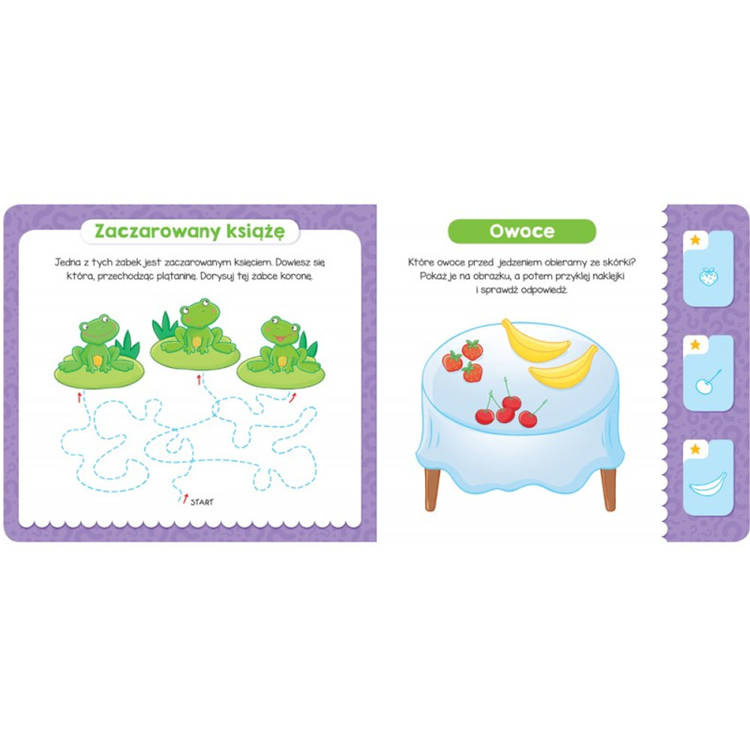 Dostosowane do wieku zadania zainteresują maluchy i zapewnią im rozwijającą zabawę, a możliwość sprawdzenia swoich odpowiedzi za pomocą kolorowych naklejek sprawi dzieciom dużo radości. Zapraszamy do zabawy!