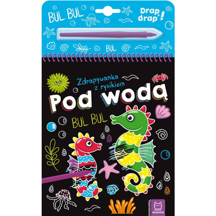 Kolorowa, tęczowa zdrapywanka Pod wodą zamknięta w poręcznym notesie z 10 kartkami, zapewni każdemu dziecku kreatywnie spędzony czas. Notes z czarnymi kartkami, ukrywa magiczne tło, wystarczy tylko użyć patyczka, rysika, wydrapać wzorek, rysunek, aby powstał uroczy obrazek. Kreatywność dzieci nie zna końca, dlatego zabawa z magicznym notesikiem na pewno będzie udana!