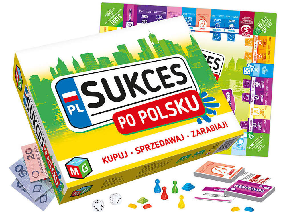 Sukces po Polsku to rodzinna gra planszowa, dzięki której można sprawdzić, czy posiadamy żyłkę biznesową. Wejdź do gry, przygotuj strategię, kupuj działki miejskie, inwestuj w nie i rozwijaj zakupione posesje. Jaką strategię przyjmiesz? Będziesz grał impulsywnie czy ostrożnie i zachowawczo? Wszystko po to, by zdominować konkurencję, utrzymać się na rynku i jak najszybciej pomnożyć swój kapitał. Rozwój wydarzeń zależy od Ciebie!