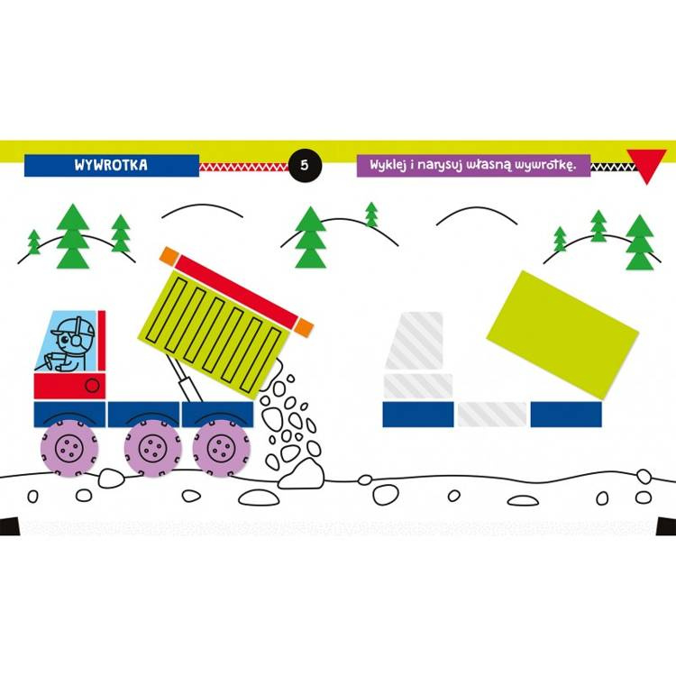 Wyklejanka, rysowanka z figurami to książeczka dla kreatywnego przedszkolaka. Dziecko przykleja naklejki i dorysowuje elementy, tworząc w ten sposób obrazek z figur geometrycznych.