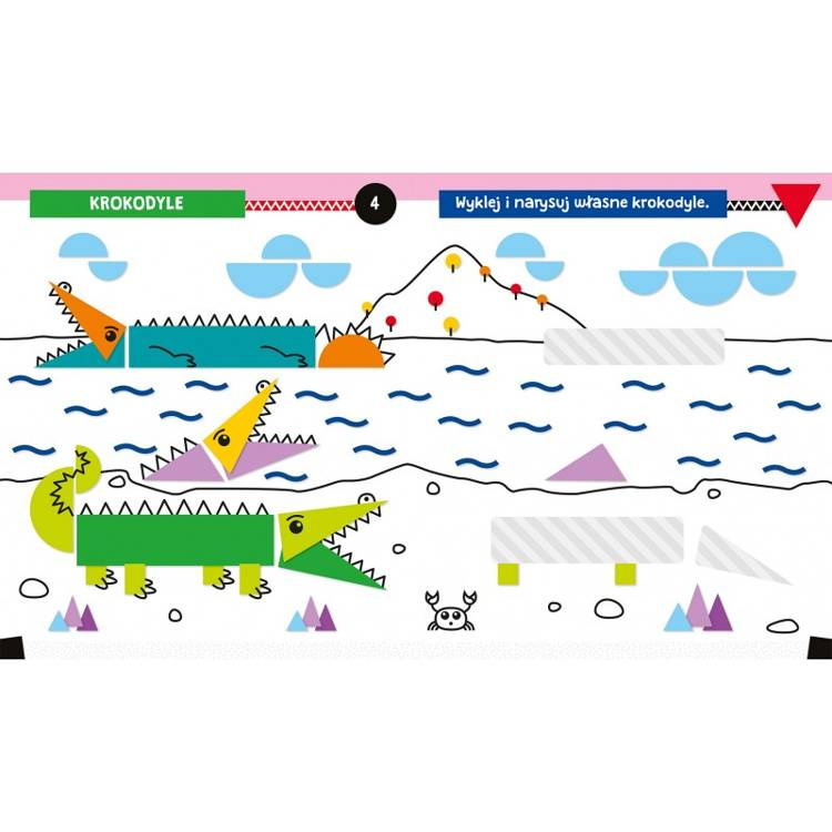 Wyklejanka, rysowanka z figurami to książeczka dla kreatywnego przedszkolaka. Dziecko przykleja naklejki i dorysowuje elementy, tworząc w ten sposób obrazek z figur geometrycznych.
