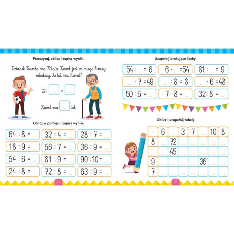 „Moja tabliczka mnożenia z pisakiem” to książka polecana do bezstresowej nauki, która pomoże łatwo i szybko poznać wszystkie tajniki tabliczki mnożenia. Zmywalny pisak pomaga w korygowaniu pomyłek: błąd zawsze można wymazać i powtórzyć ćwiczenie. Świetnie sprawdzi się w domu jako ćwiczenia dodatkowe. Ciekawe i zgodne z podstawą programową zadania zachęcą dzieciaki do zadań matematycznych, a tabliczka mnożenia przestanie być koszmarem. Stopień trudności ćwiczeń wzrasta na kolejnych stronach książki.