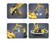 - klocki wykonane z wysokiej jakości tworzywa sztucznego, w charakterystycznej dla pojazdów budowlanych żółto- szarej kolorystyce