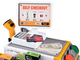 Samoobsługowy sklep spożywczy z ekspresem do kawy, lodówką na napoje to taka szybka "ŻABKA". Szybki punkt obsługi to propozycja dla wszystkich małych przedsiębiorców, którzy nadążają za nowościami w obsłudze klientów. Cały sklep to ekspres do kawy, lodówka na napoje, desery i kasa fiskalna z czytnikiem. Świetny pomysł na zabawę w sprzedawcę, punkt obsługi z napojami, przekąskami.