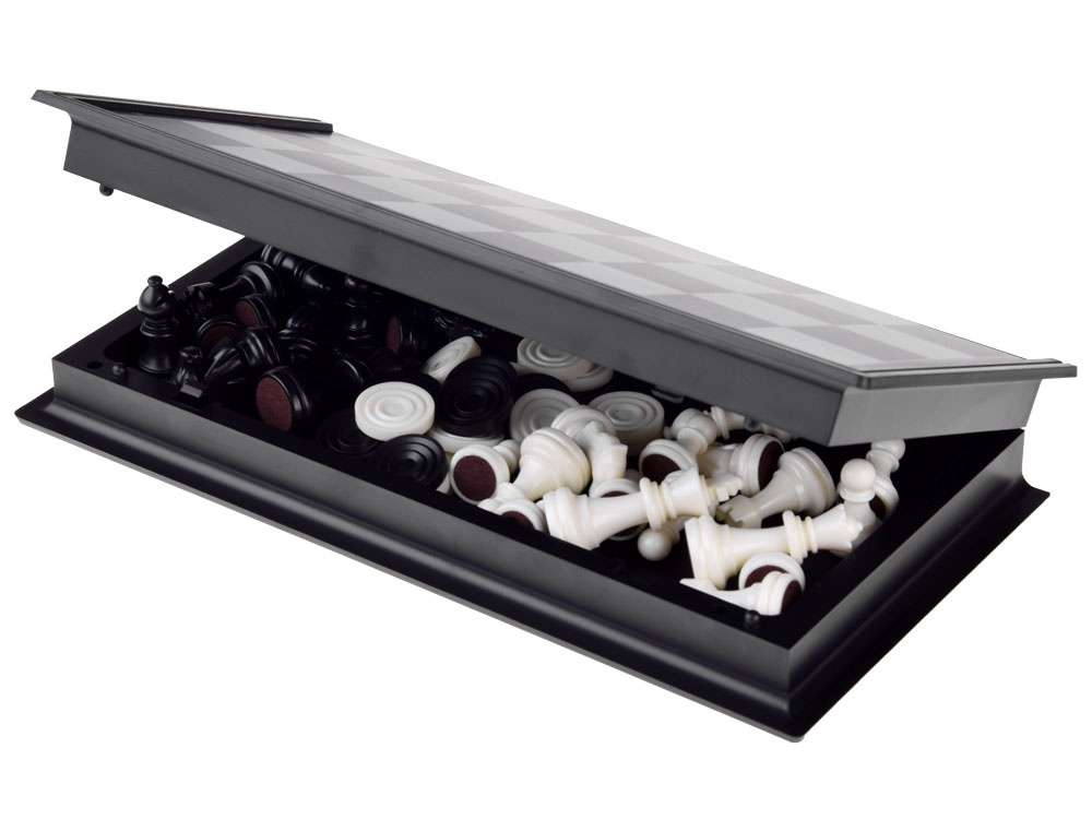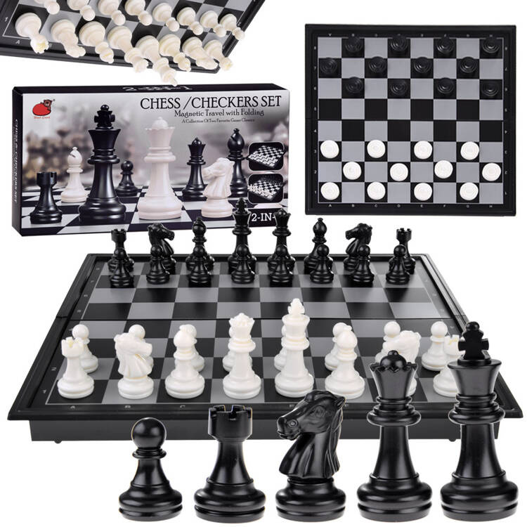 Zestaw 2w1 szachy magnetyczne + warcaby to najbardziej popularne i znane na całym świecie gry planszowe. Zestaw zawiera komplet: figur do gry w szachy oraz pionków do gry w warcaby oraz eleganckie pudełko wykonane z plastiku, które po rozłożeniu służy jako plansza. Opakowanie nie jest bardzo duże, a dzięki wykonaniu z lekkiego tworzywa, komplet nie jest ciężki - można zabrać go wszędzie ze sobą, przez co idealnie sprawdzi się w podróży. Dzięki magnetycznym figurom szachowym i planszy, rozgrywkę można zacząć nawet w samochodzie, autobusie, pociągu itp. lub w ogrodzie, na pikniku itp.