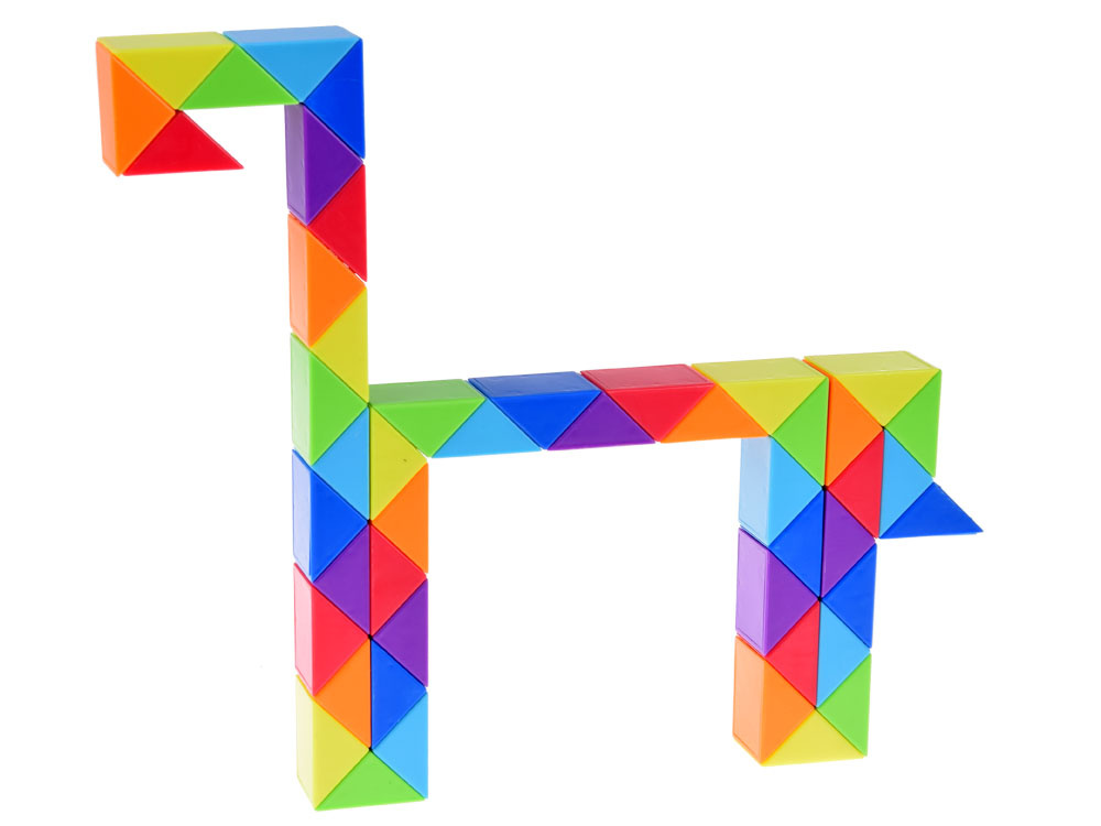 Zabawka rozwija kreatywność, zdolności manualne, uczy cierpliwości i ćwiczy koncentracje. Zabawka wykonana z plastikowych, kolorowych trójkątów. Podczas zabawy wężem można ułożyć wszystko co powstanie w Twojej wyobraźni. Można ją zabrać ze sobą wszędzie, umili każdą wolną chwilę całość kostki rozwija wyobraźnię.