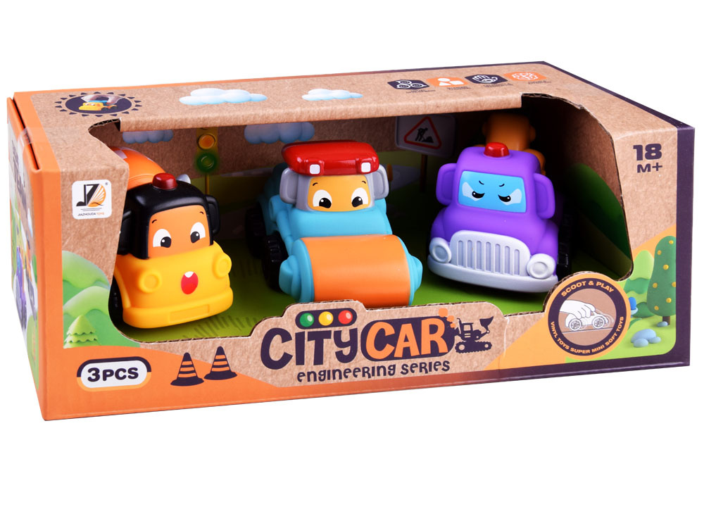 Zestaw 3 autek budowlanych pozwoli na wesołą, bezpieczną zabawę dla dzieci od 18 miesiąca życia. Pojazdy wykonane są z gumy oraz tworzywa sztucznego, nie posiadają ostrych krawędzi, czy małych elementów, więc bez obaw można je podarować nawet małemu brzdącowi.