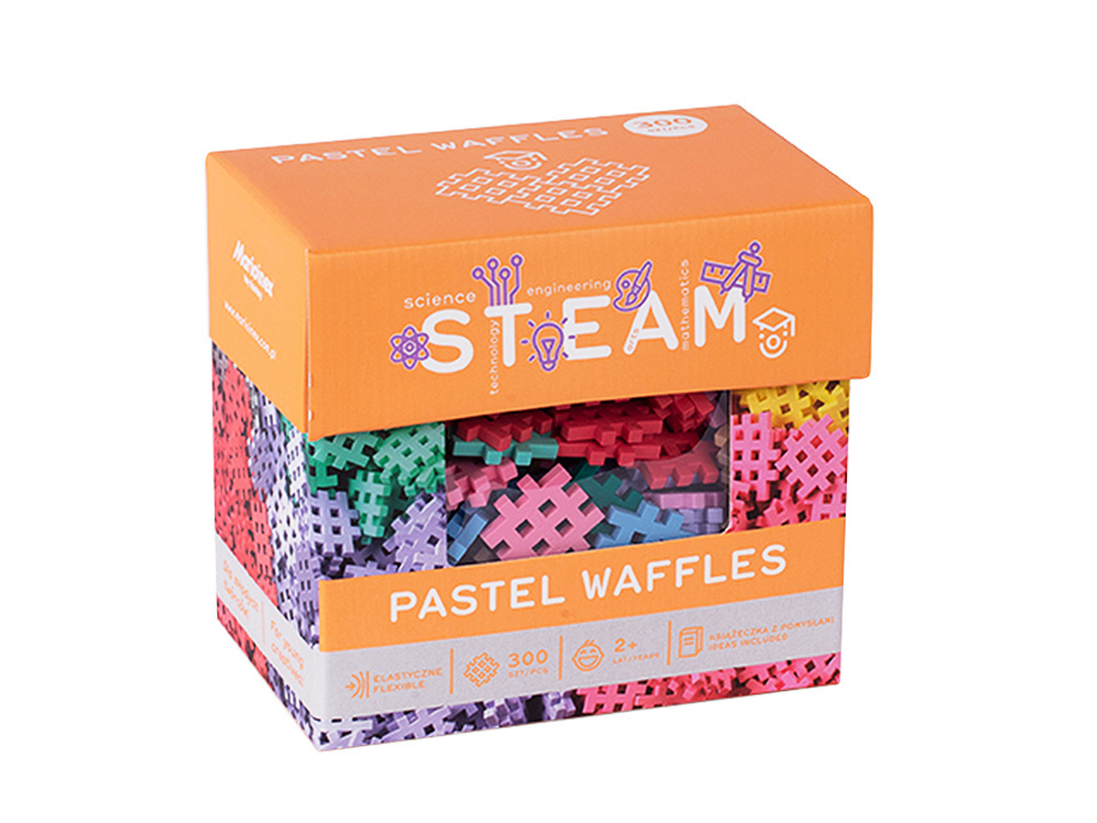 Klocki Mini Waffle Pastel to zestaw zawierający 300 elementów o charakterystycznym kształcie kratki, kwadratowych bloczków z 4 otworami oraz 10 wypustkami. Można je swobodnie ze sobą łączyć, tworząc płaskie, a także przestrzenne konstrukcje 2D oraz 3D. Piękne pastelowe kolory na pewno wyciszą i ułatwią skupienie. Klocki rozwijają dziecięcą wyobraźnię, zdolności manualne i uczą logicznego myślenia. Klocki Marioinex są zaprojektowane tak, aby były jak najbardziej przyjazne i bezpieczne dla dzieci. Są wykonane z elastycznego, miękkiego i przyjemnego w dotyku materiału. Ich kształt został idealnie dopasowany do kształtu i wielkości dziecięcych dłoni dziecka, a zastosowane barwy są łagodne i przyjemne dla oka.