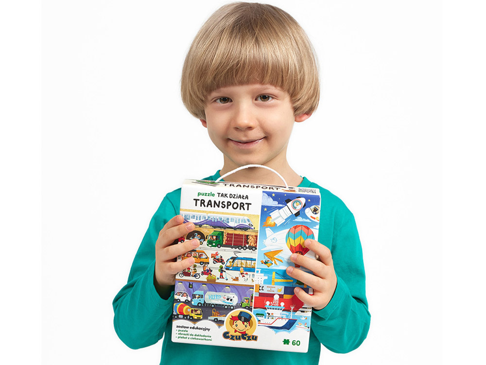 Puzzle "Tak działa transport" to propozycja dla przedszkolaków, które szczególnie lubią różnego rodzaju pojazdy. Ruszamy do zabawy! Zwróćcie baczną uwagę na to, co jeździ po drogach, pływa po wodach i lata w powietrzu. Znane i lubiane oraz mniej oczywiste środki transportu to świetna motywacja do zabawy.