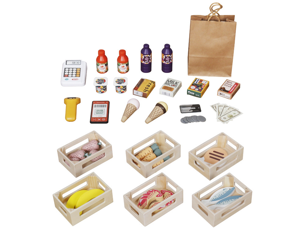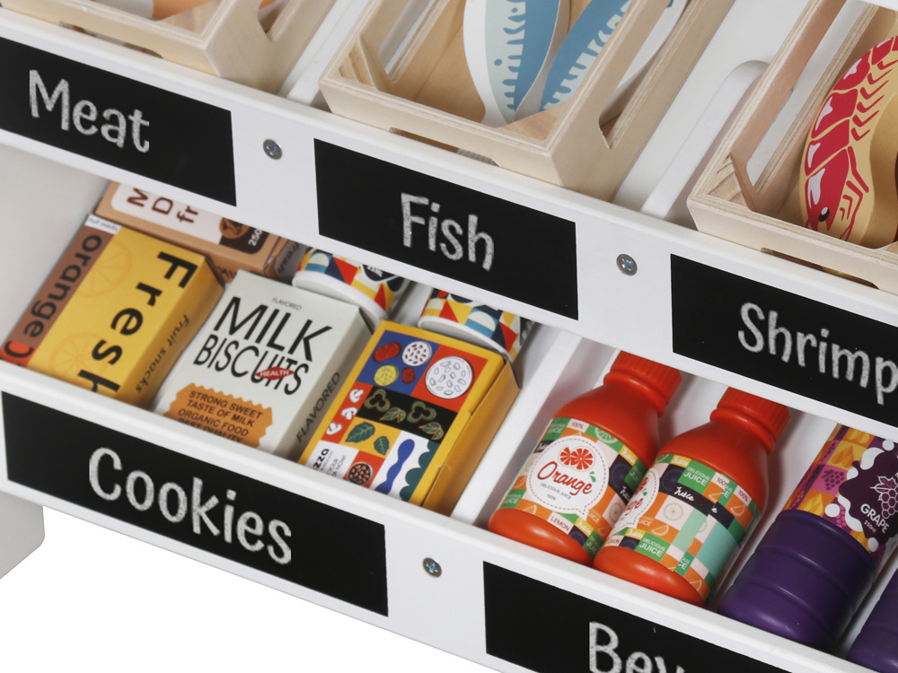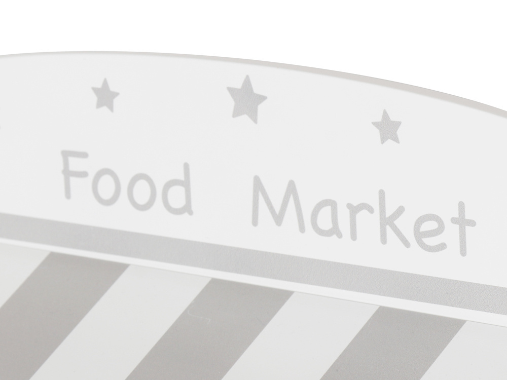 Ten uroczy drewniany stragan to doskonała zabawka dla dzieci, które kochają zabawy w odgrywanie ról. Wykonany z naturalnego drewna, w białym i naturalnym kolorze, które nadają mu klasyczny i estetyczny wygląd. Stragan wyposażony jest w różnorodne drewniane produkty spożywcze, które zachęcają do twórczej zabawy.
