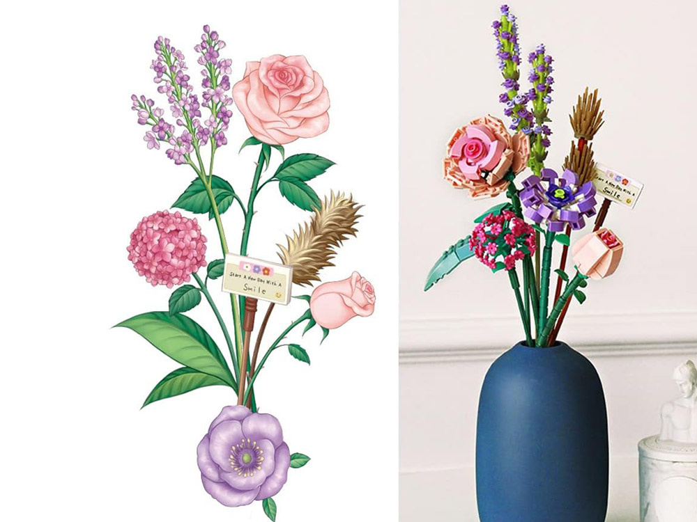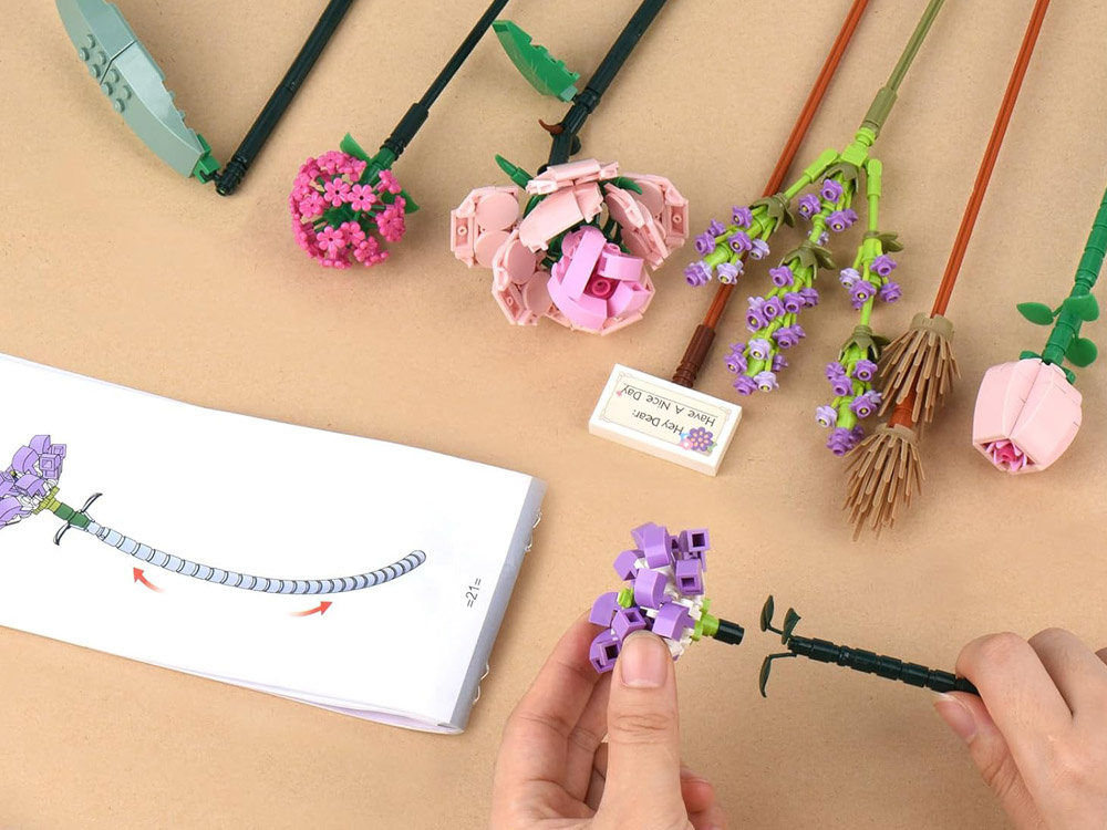 Kolorowy bukiet: Zestaw klocków do stworzenia bukietu z żywymi kolorami i unikalnymi kształtami.